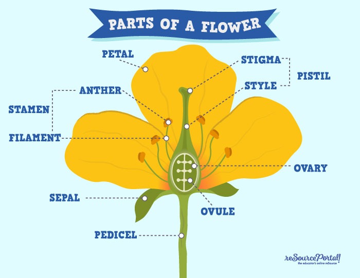 This visual representation is an effective tool for teaching students about the anatomy of flowers. Each part is labeled, providing a clear reference for students learning about the various structures that make up a flower. It helps in making complex biological concepts more understandable and engaging for young learners.